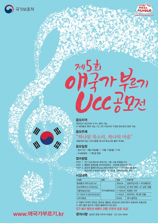 - 공모전 홈페이지(www.애국가부르기.kr) > ' 접수하기' 를 통해 응모사연과 영상이 업로드 된 URL을 입력해주세요.