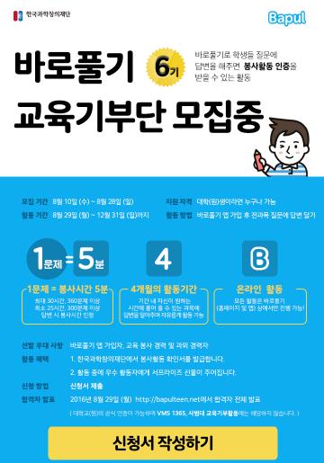 * 합격자 발표 신청서 확인 후 개별 연락 전체 합격 공지는 http://bapulteen.net