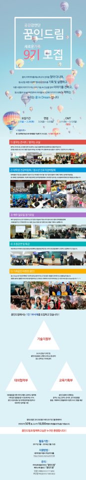 - 저마다 꿈(Dream)을 꾸고 있는 청소년과 멘토들이 만나, 소통과 공감을 통해 같이 꿈을 꾸고 서로에게 힘이 되어주는 매력만점 "꿈 in Dream"의 새로운 가족을 모집합니다! 꿈 in Dream의 다양한 활동에 함께하고 싶다면? 꿈 in Dream의 가족같은 정을 느껴보고 싶다면? 지금 바로 꿈 in Dream 9기에 지원해주세요!