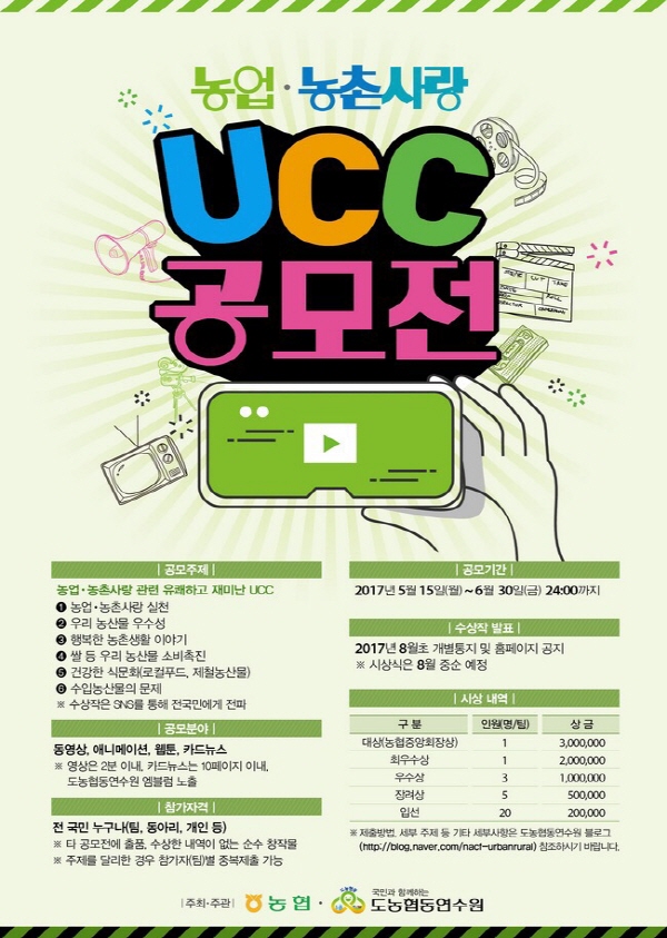 - 도농협동연수원 UCC 공모전 담당자 T. 031-961-0131 (평일 09:00 ~ 18:00)