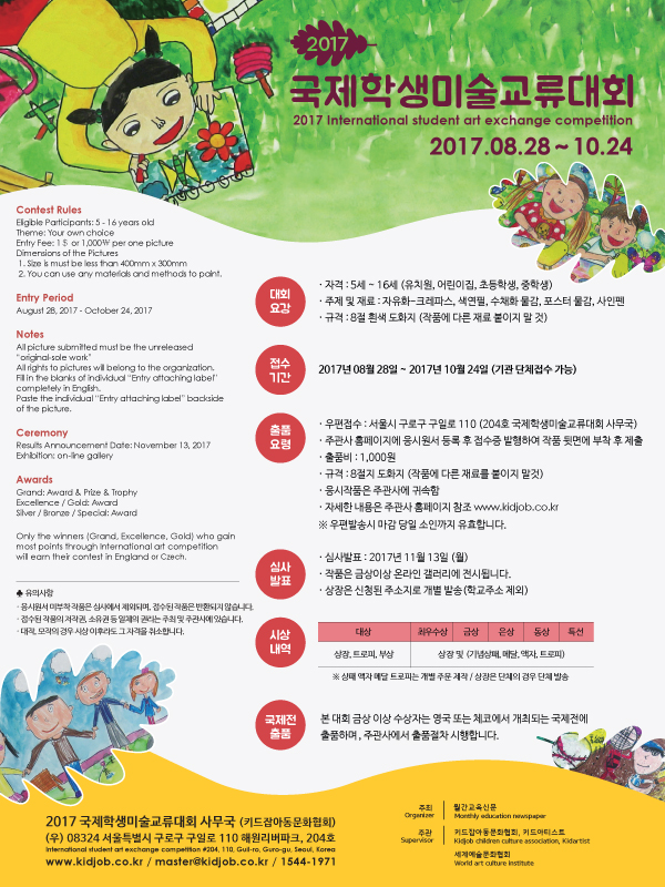 - 주관 : 키드잡아동문화협회, 키드아티스트 2017 International Student Art Exchange Competition