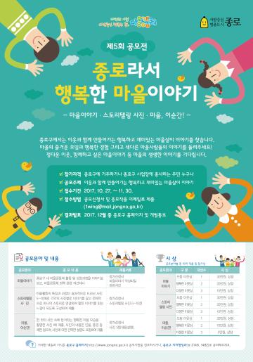 이웃과 함께 종로 마을 안에서 살아가는 행복하고 재미있는 마을이야기, 우리 마을을 더 행복하게 만들 수 있는 아이디어 등 자유로운 형식의 글 |