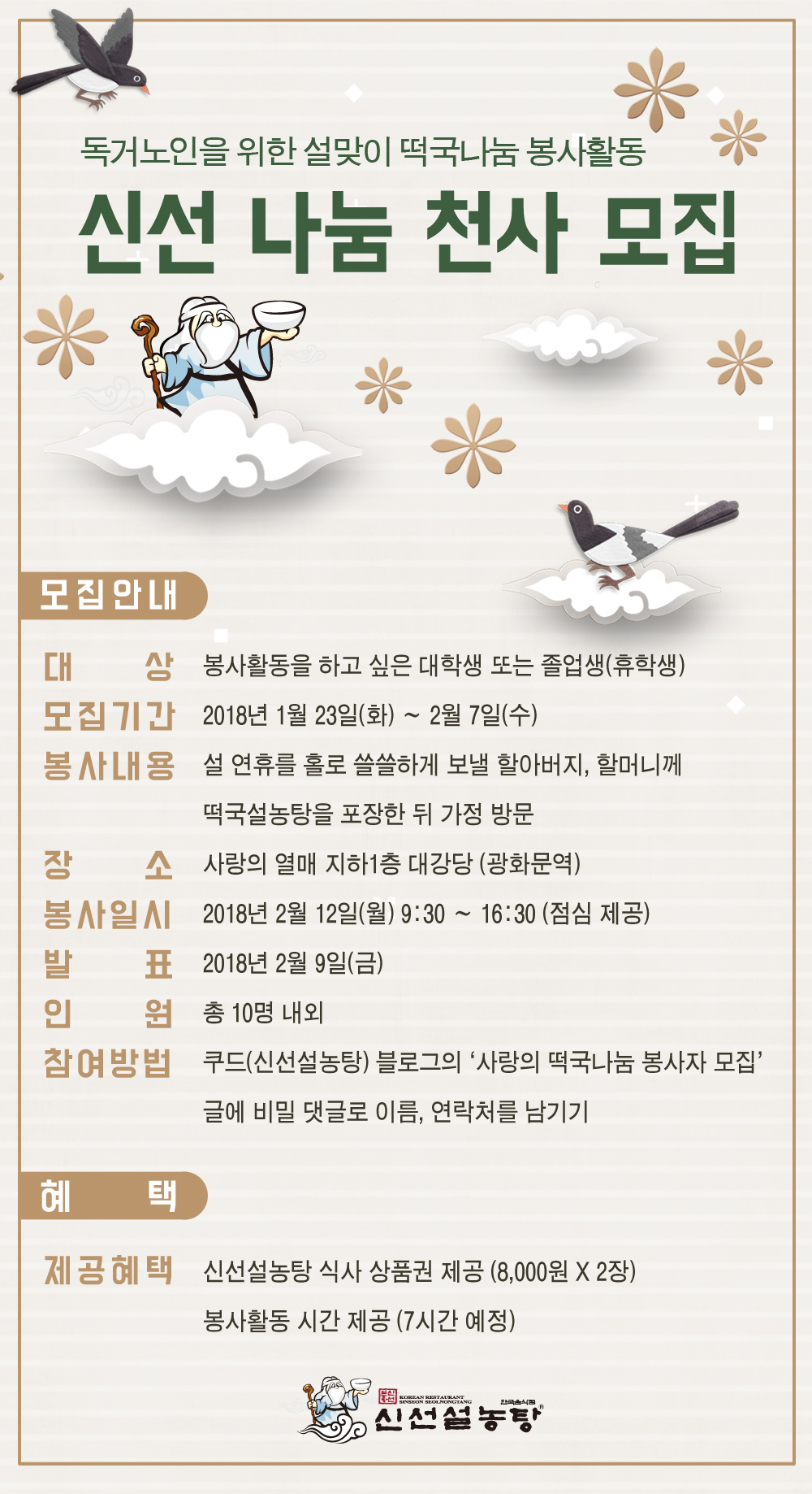 - 쿠드(신선설농탕) 블로그의 '사랑의 떡국나눔 봉사자 모집' 글에 비밀 댓글로 이름, 연락처를 남기기