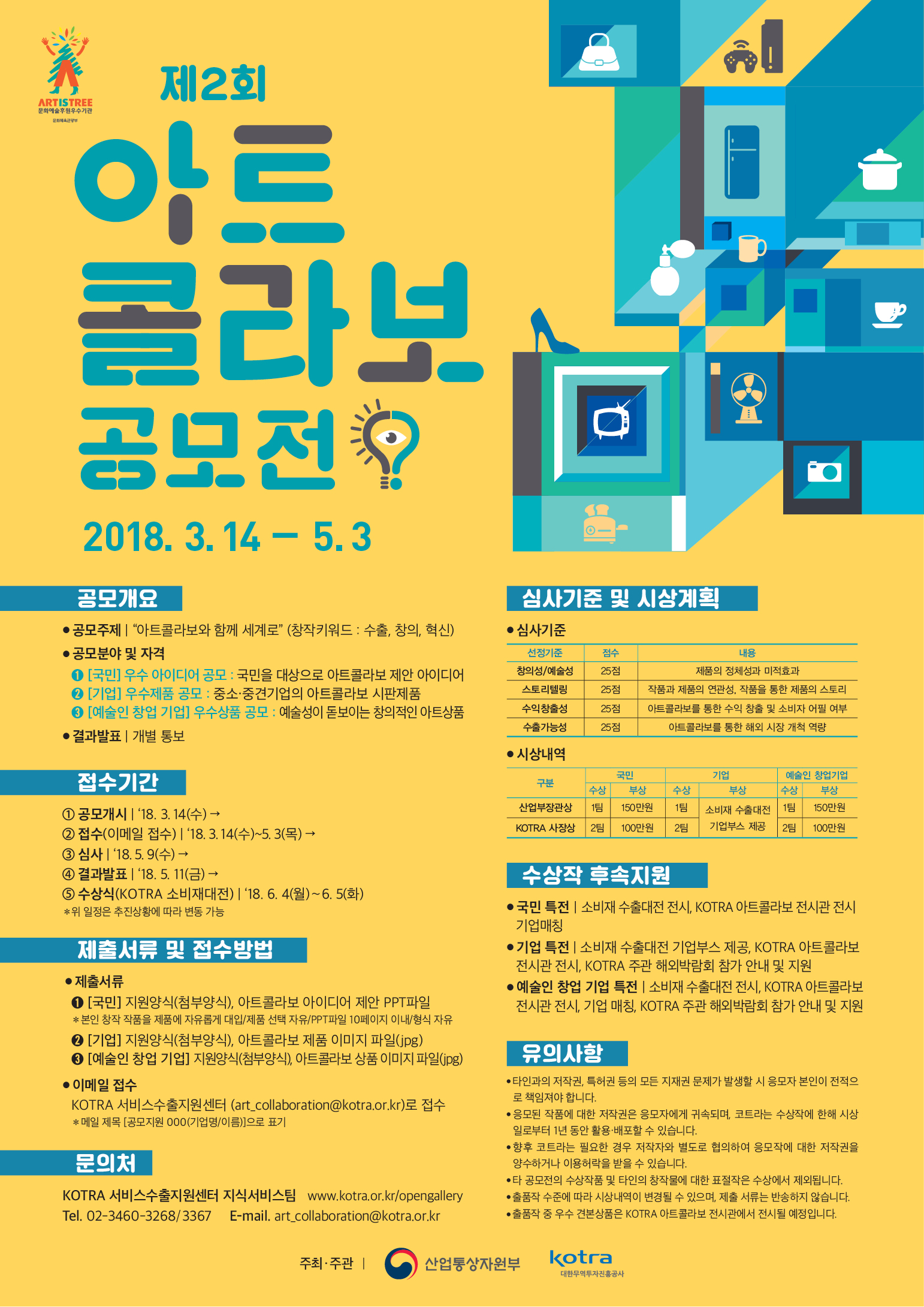- 공모주제 : “아트콜라보와 함께 세계로” (창작키워드 : 융합, 창조, 수출)