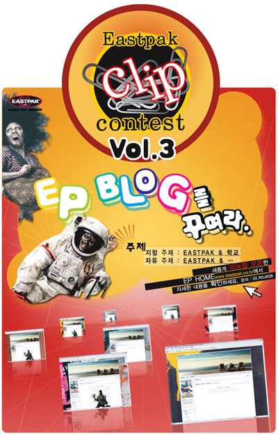 참가 대상 블로그에 관심 있는 사람이라면 누구나 참여 가능 ( 단 1인 1 블로그를 원칙으로 합니다.) 주제 지정 주제 : eastpak & 학교 친구, 선생님, 방학, 자율학습, 수학여행, 옆 학교에 다니는 첫사랑, 같은 반이 다함께 갔던 봉사활동, 눈물의 졸업식 등 "학교" 하면 떠올릴 수 있는 이야기들이 무수히 많죠? eastpak 그리고 학교와 관련 해 떠올릴 수 있는 이 모든 것들을 주제로 삼아 자신만의 블로그를 꾸며 보세요. 주제에만 적합하다면 이야기를 풀어 나가는 형식 방법에는 아무런 제약이 없습니다. 자유 주제 : eastpak & ... "..."에는 무엇이 들어 갈 수 있을까? eastpak과 관련 된 모든 것들을 이야기 할 수 있지 않을까? 그것을 주제로 삼아 자신만의 블로그를 꾸며 보세요. 내가 좋아하는 영화, 음악, 맛있는 멋거리, 자주 가는 분식집, 재미있었던 여행지 등 무궁 무진한 이야기들을 eastpak과 연관 시켜 풀어 내 보세요. 참가신청기간( 네이버카페 참고 : http://cafe.naver.com/epblog ) 참가 신청 게시판에 1월 21일 까지 신청자 등록을 해야 참가자로 인정 됩니다. 신청자 등록을 하지 않으면 심사 대상에서 제외가 되니 꼭 확인해 주세요. 참가 신청 형식은 참가 신청 게시판에 있습니다. 대회일정 참가 신청기간 : 1월 6일 ~ 1월 21일 블로그 꾸미기 기간 : 1월 6일 ~ 2월 23일 수상자 발표 : 2월 28일 시상식 : 3월 8일 평가기준 주제의 부합성 : 자신이 선택한 주제와 eastpak 브랜드에 맞는 블로그로 만들었는가? 디자인 : 블로그의 주어진 틀 안에서 디자인, 시각적인 효과가 얼마나 우수한가? 독창성 : 나만의 아이디어가 얼마나 어떻게 참신하게 표현되었는가? 내용의 충실성 : 내용에 내실이 있으여 내용의 충실도는 어느 정도인가? 소스킷의 활용도 : eastpak에서 주어진 소스킷을 얼마나 적절히 잘 활용하였는가? 그 외 향후 eastpak 홍보의 활용도, 게시물 수 ( 글, 이미지를 합쳐 30개 이상), 방문자 수, 스크랩 수 등으로 평가 합니다. 유의사항 1. 현재 본인의 블로그를 운영 중이라면, 현재의 블로그에 대회 기간 동안 대회 관련 포스트를 작성 하시면 됩니다. 기존의 포스트나 사진 자료등을 삭제 하지 않아도 됩니다. 2. 수상작으로 선정된 블로그들은 1개월 동안 블로그 상태를 유지 해야 하며 블로그 포스트들의 저작권은 eastpak korea에 귀속 됩니다. ( 단 수상하지 못한 블로그들은 해당하지 않습니다. 1개월 동안 포스트 이전 작업을 시행 할 예정이랍니다.) 3. 포스팅에 쓰이는 이미지나 글귀 중 본인의 순수 창작물이 아닌 인용의 경우에는 출처를 꼭 명시해 주어야 합니다. 4. 상금에 대한 제세 공과금은 수상자 본인이 부담 하셔야 합니다. 5. 심사 대상에서 제외 되는 경우는 ''참가 신청을 하지 않은 블로그 / 기본 조건을 충족하지 못한 블로그 / 너무 성의 없는 블로그'' 입니다. ====================================================================================================================== 시상 내역 지정 주제 부문 1등 1명 : 상금 100만원과 상패 2등 1명 : 상금 50만원과 상패 3등 1명 : 상금 20만원과 상패 자유 주제 부문 1등 1명 : 신학기 학급(회사원일 경우 회사 부서) 전원에게 eastpak 가방을 상품으로 지급 2등 2명 : 본인을 포함 베스트 프렌드 15명에게 eastpak 가방을 상품으로 지급 3등 3명 : 본인을 포함 베스트 프렌드 5명에게 eastpak 가방을 상품으로 지급 1% 부족상 지정 주제, 자유 주제 부문 통합 30명에게 eastpak 가방을 드립니다.