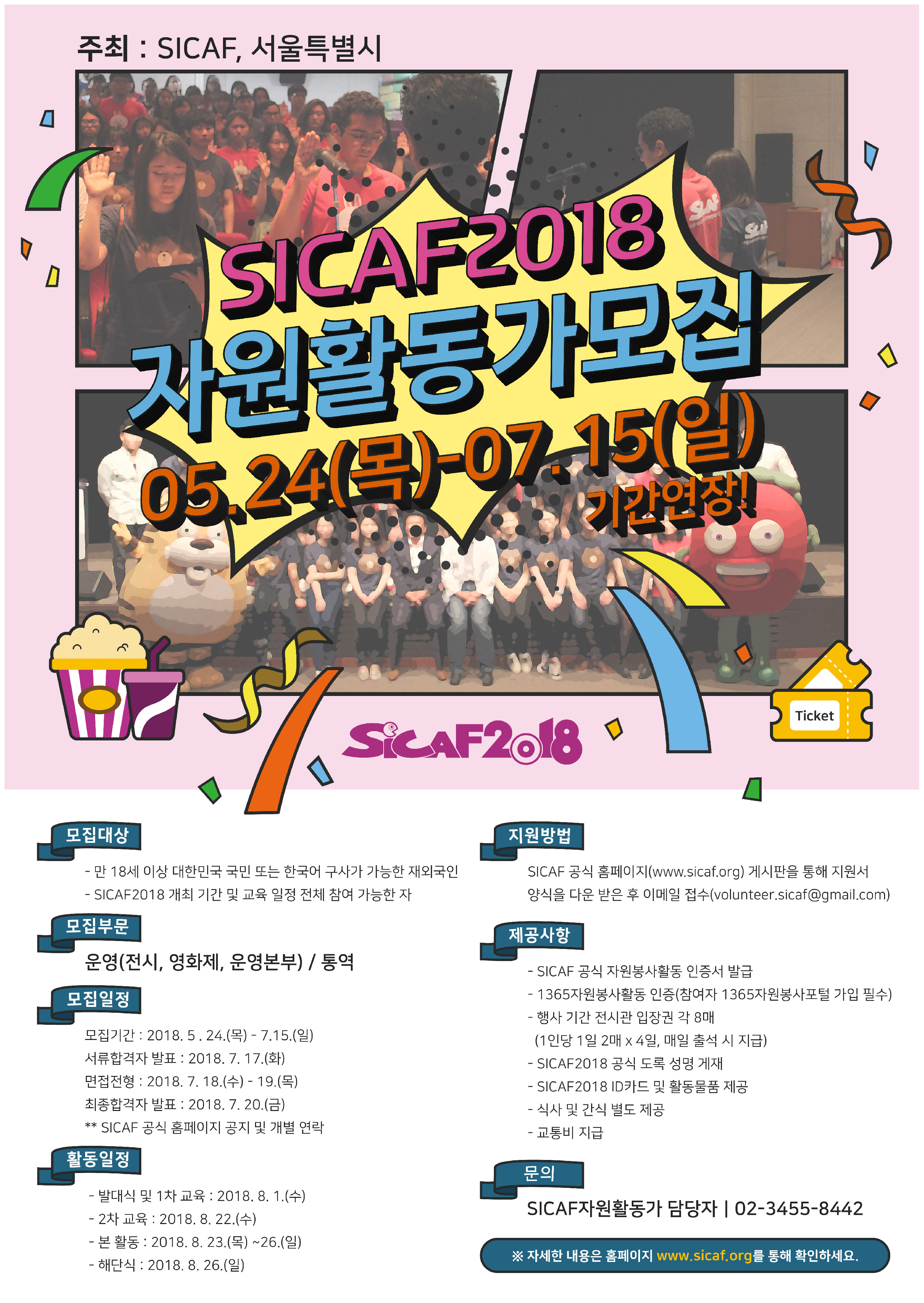 SICAF2018 서울국제만화애니메이션페스티벌을 함께 할 자원활동가를 모집합니다!