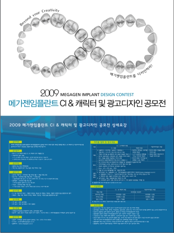 차세대 세계일류상품 선정에 발맞추어 메가젠임플란트의 글로벌 이미지 구축과 향후 새로운 변화를 위한 c.i & 캐릭터 및 기업이미지광고를 공모하고자 하오니 관심있는 분들의 많은 참여를 부탁드립니다.