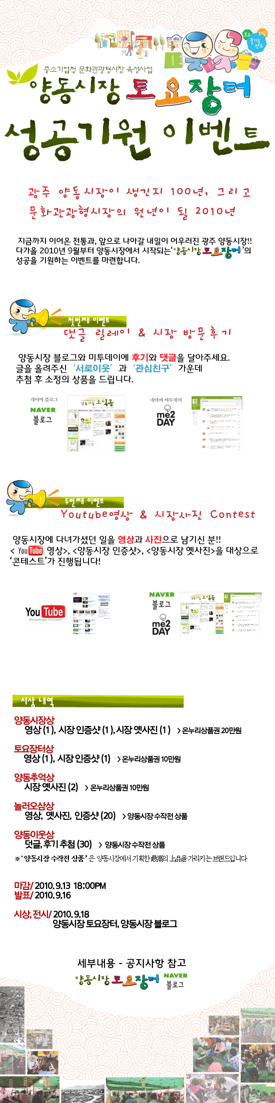 성공기원 이벤트 빛고을光州 양동시장을 홍보할 수 있는 재미있고 흥미로운 일들 올려주세요.