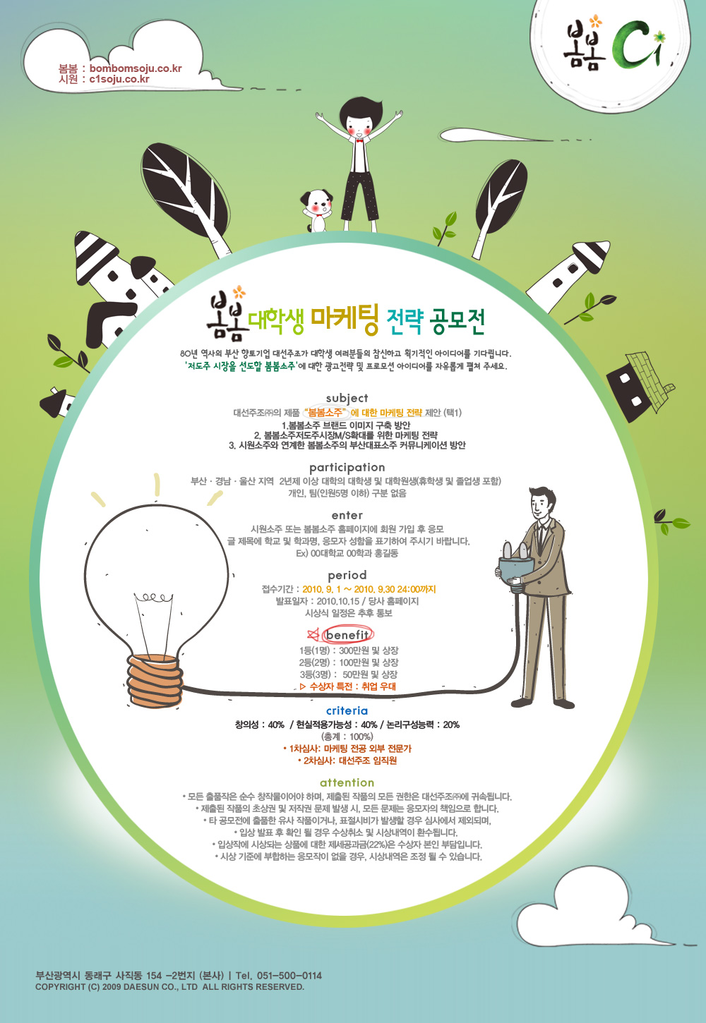 공모 주제: 대선주조(주)의 제품 "봄봄소주"에 대한 마케팅 전략 제안 (택1)