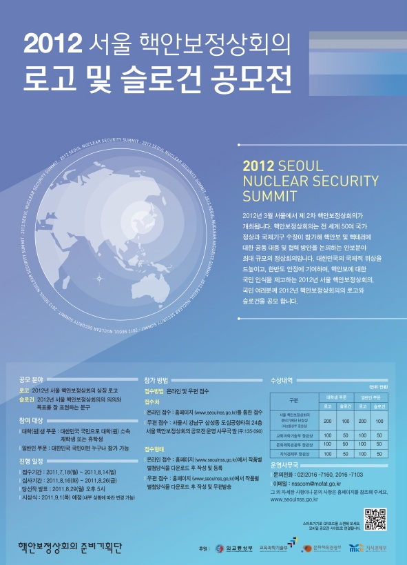 - 우편 접수: 서울시 강남구 삼성동 도심공항타워 24층 서울 핵안보정상회의 공모전 운영 사무국