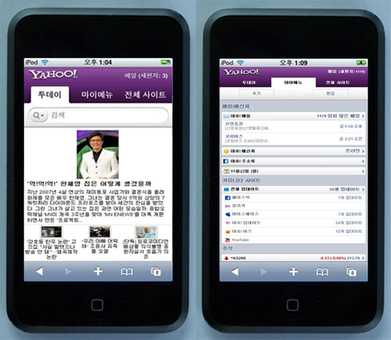 ‘야후!’가 아이폰, 아이팟터치, 블랙베리등의 스마트폰 사용자에 최적화 된 새로운 모바일 홈페이지(http://kr.m.yahoo.com)를 한국에 선보인다고 24일 밝혔다. 이번에 선보인 모바일 홈페이지는 사용자들의 온라인 생활의 중심이 되고자 하는 목표 아래, 국내 스마트폰 사용자들이 자신에게 최적화 된 콘텐츠와 서비스를 보다 편리하게 접할 수 있도록 정보 접근성 개선 및 개인화에 초점을 맞췄다.