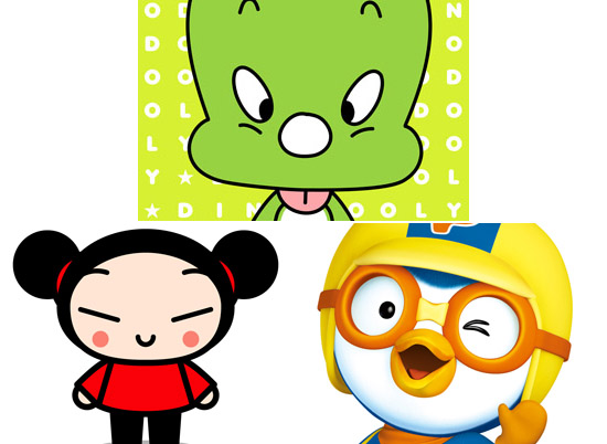 >> 방귀대장 `뿡뿡이(왼쪽 위)`, `고바우영감(김성환, 오른쪽 위)`, 카트라이더의 주인공 `배찌`