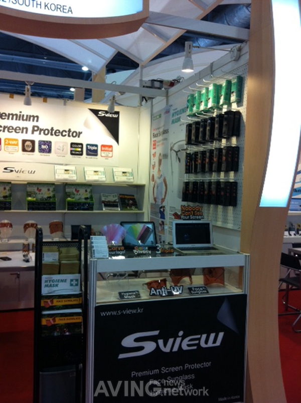 에스뷰는 3장이 겹쳐진 레이어 구조로 한번 부착해 흠집이 날 경우 위의 필름만 떼어내 사용할 수 있어 다시 붙이는 번거러움 없이 3번을 편하게 사용할 수 있는 '3겹 트리플필름', 액정보호필름에 회사로고, 회사이름, 이니셜 등을 새겨주는 '이니셜(Initial) 필름', 블랙, 핑크, 화이트, 그린, 블루, 옐로 등 6가지 색상을 입힌 '컬러 액정보호필름'을 선보였다.