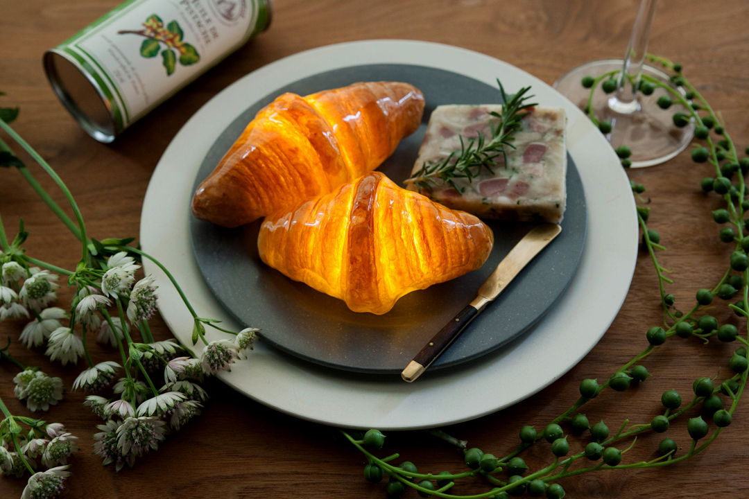 크로와상(Criossant)은 버터를 듬뿍 넣은 여러 층의 빵으로 부드럽고 촉촉한 맛이 특징이다. 개인적으로 에디터가 가장 좋아하는 빵이기도 해서 특히나 눈길이 갔는데, 여러 겹으로 겹쳐진 버터 층 사이로 비치는 불빛은 빵의 맛처럼 부드럽고 은은하다. 쁘띠 불, 쿠페, 크로와상은 손바닥 안에 쏙 들어오는 크기다.