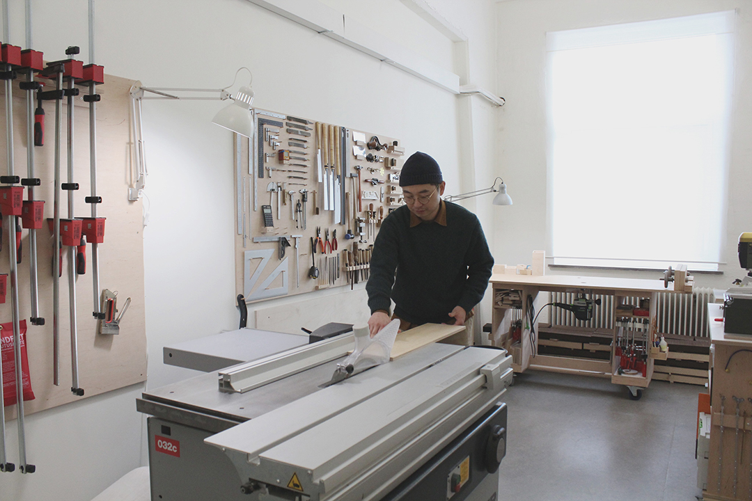 나무라는 재료 자체를 좋아하기도 하지만 캐비닛 메이킹을 배우면서 나무를 깊이 알게 되어서 나에게는 그만큼 디자인을 표현하기에 수월한 재료이자 익숙한 재료가 되었다. 게다가 스웨덴에서 캐비닛 메이킹을 배울 당시에도 나무 관련 제작 업체나 재료상들을 접할 기회도 많았기에 상대적으로 많은 작업들을 나무를 주재료로 하여 표현하고 있다. 하지만 동시에 다양한 재료에도 관심이 많다. 바이오 플라스틱(Bio-plastic)으로도 작업을 했었고, 지금은 유리나 텍스타일, 철 등의 디자인도 만들 수 있는 생산처들을 알게 되어 다양한 작업을 늘려 나가고 있다.