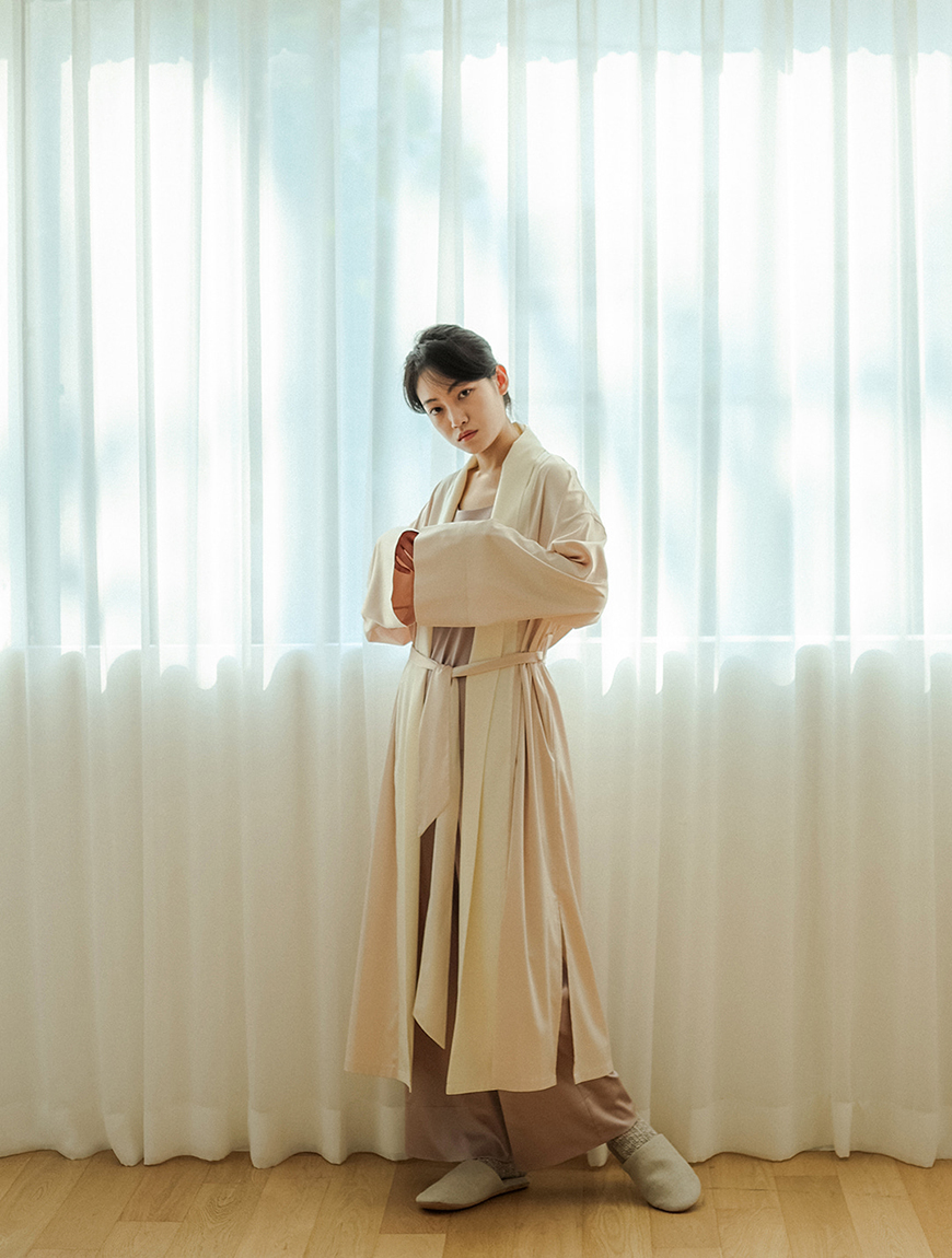 두 번째로는 넉넉한 사이즈를 들 수 있어요. 고구려 의복은 활동성을 강조해 넓은 바지통과 소매통이 특징인데, 이것을 그대로 가져와 코구요 홈웨어에 적용시켰어요. 몸에 달라붙지 않는 넉넉한 착용감에 특히 신경을 쓰고 디자인해서 집에서 하루 종일 입고 있어도 불편하지 않도록 만들었어요.