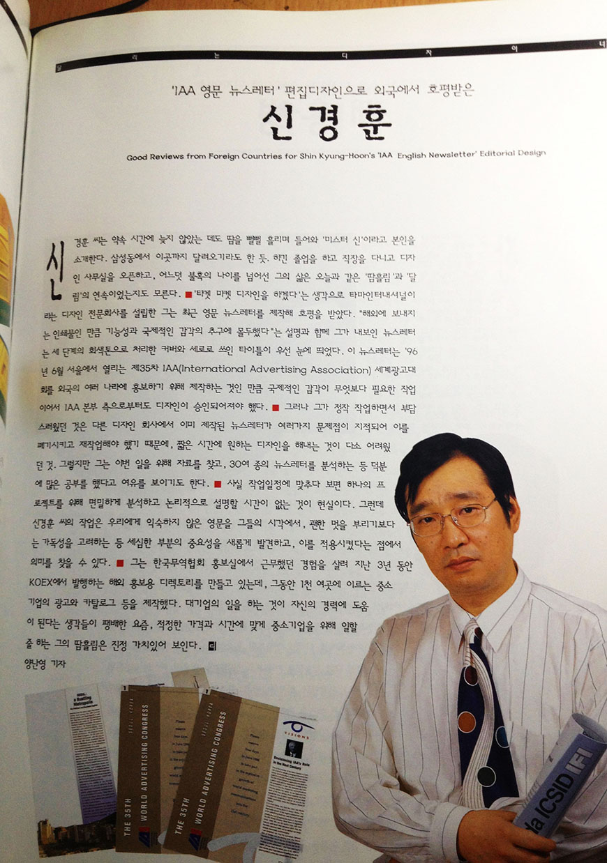 신경훈 작가는 디자인 업계에서 왕성하게 활동하던 디자이너였다. 주로 광고 디자인과 로고 디자인 작업을 했던 그는 IAA 영문 뉴스레터 편집 디자인으로 해외에서 호평을 받기도 했다.