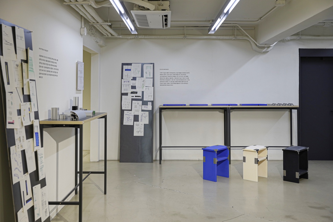 전시는 크리에이티브 아트 브랜드 캐비넷클럽과의 협업을 통해 신진 디자이너와 아트퍼니처, 공예, 미디어아트 등 다양한 분양에서 활동 중인 작가를 소개한다. 올해는 2개월을 주기로 총 6번을 전시가 예정되어 있다. 그중 첫 번째 전시로 산업디자인 기반의 오브제와 가구, 공간을 디자인하는 최원서 디자이너의 ‘재배치’전이 열리고 있다.