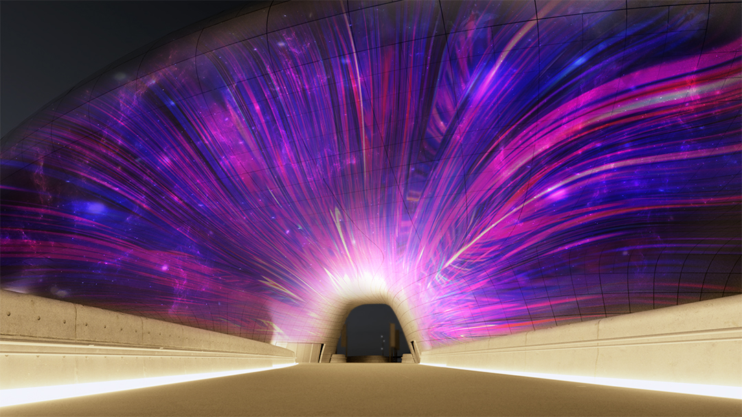 자이언트스텝의 <여정의 시작(Beginning of the Journey)>은 본격적인 우주 여정의 시작점을 연다. DDP의 유기적, 곡선형의 외관 구조를 적극 활용한 작품으로, 무한한 가능성의 공간인 우주의 시간과 공간의 개념을 초월해 자유롭게 넘나드는 여정의 묘미를 전한다.