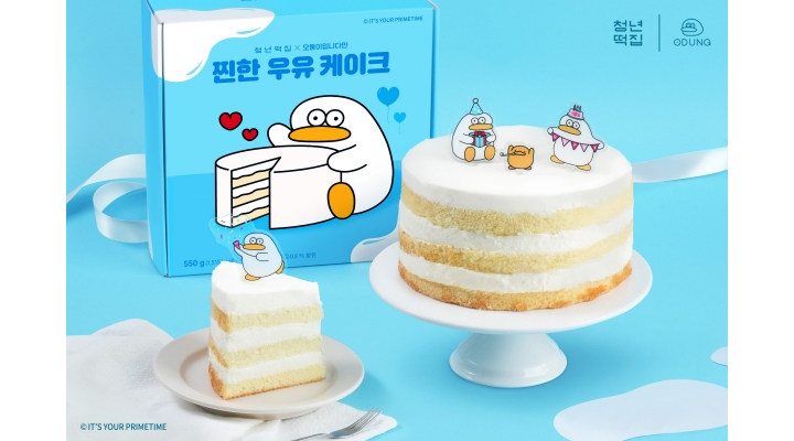 퓨전 디저트 브랜드 청년떡집이 카카오톡 인기 이모티콘 캐릭터 ‘오둥이 입니다만’과의 협업을 통해 첫 홀케이크류 제품인 ‘찐한 우유케이크’를 카카오톡 선물하기에 단독 출시했다.