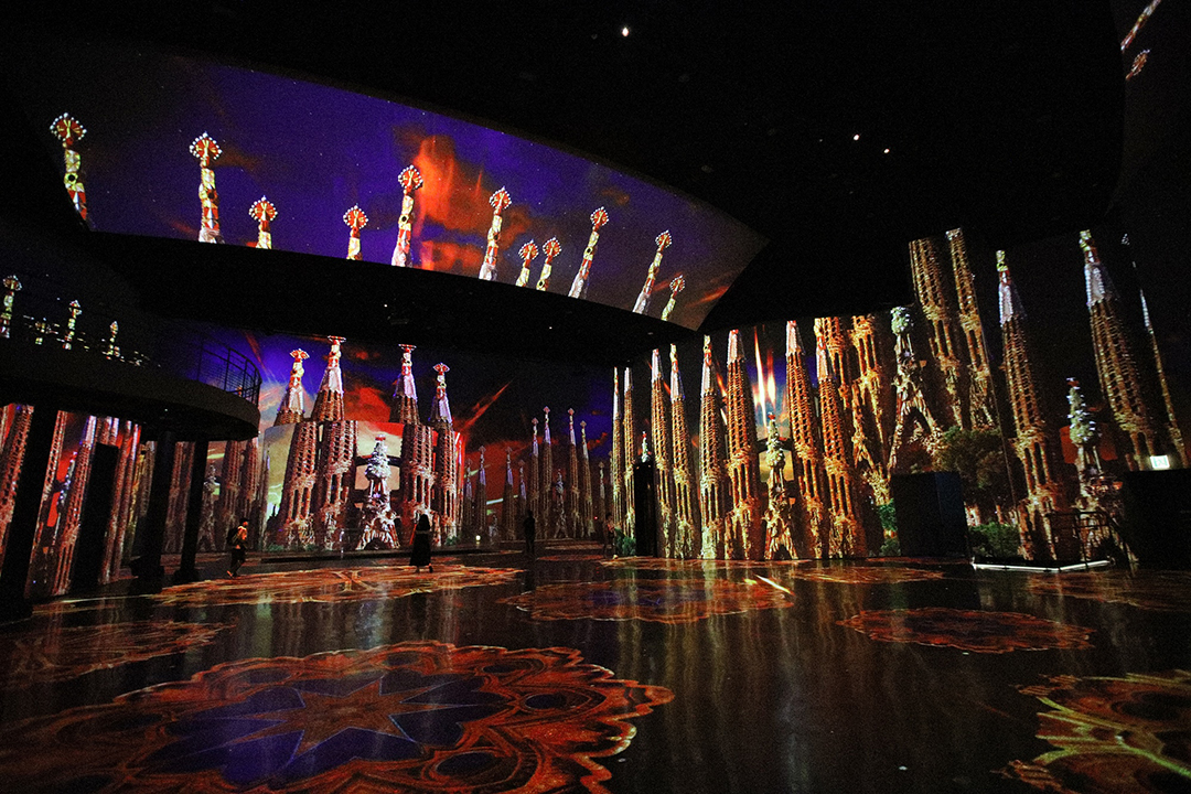 가우디는 달리에게 큰 영감을 준 작가로, 전시에서는 건축물에 내리쬐는 햇빛의 궤적을 따라 가우디의 무한한 상상력과 창작력의 세계로 빠져들 수 있다. 가우디 건축물의 쌍곡선 아치, 비스듬한 기둥, 물결형의 외벽이 눈 앞에 나타나며, 유기적인 패턴으로 이루어진 세라믹 모자이크가 공간에 생동감을 불어넣는다.