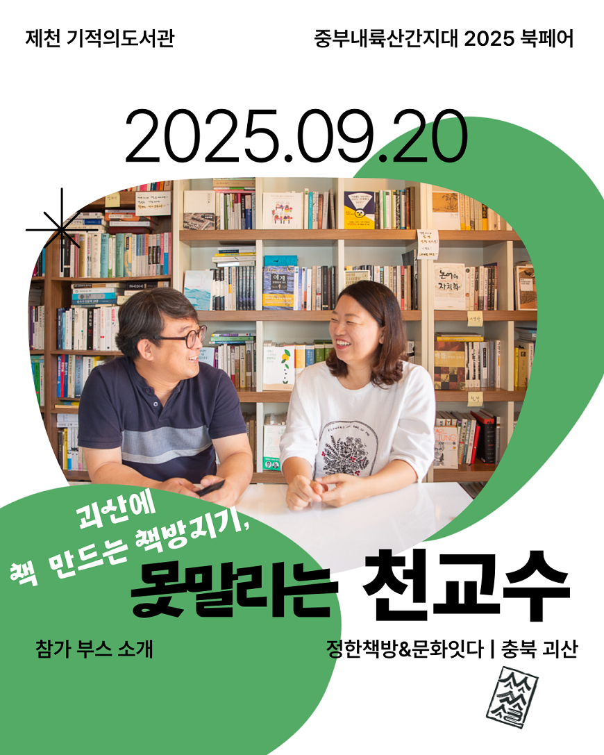책문화 확산을 통해 사람을 변화시키고 문화를 변화시키는 북페어가 있다. 제천에서 개최된 ‘제1회 중부내륙산간지대 2025 북페어’다. 1년에 한 번, 각 지역을 돌아가며 열리는 이 북페어는 해당 지역에서 추진을 주관하며, 올해는 제천에서 행사가 진행됐다.
