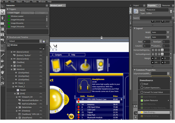 특히, 디자이너를 위한 “Codeless”코드 작성이 필요 없는 인터렉티브 디자인 환경을 구현 가능하며 디자이너가 컨트롤들을 손쉽게 조합해 생성하는 것도 지원하며 개발자가 작성한 코드나 컨트롤을 드래그 앤 드롭으로 Expression Blend에서 인터렉티브 디자인에 추가가 가능합니다. 또한, 외부의 데이터나 인터페이스도 그대로 가져와 연결이나 통합이 가능하고 다양한 스크린 크기에 맞는 인터렉티브한 어플리케이션 인터페이스 제작도 지원합니다.