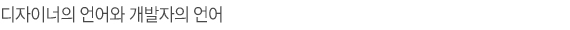 디자이너와 개발자는 분명 같은 우리말을 합니다. 하지만, 이 글을 보고 계신 디자이너 분께서 느끼시는 것처럼, 실제 프로젝트를 진행할 경우에는 분명히 디자이너와 개발자가 같은 “우리말”을 쓰지만, 소통이 되지 않는 경우가 많다는 것을 느끼고 계실 것입니다. 왜 이런 상황이 발생하게 될까요? 디자이너는 창조의 산출물인 “디자인”으로 소통하려 하고, 개발자는 어플리케이션을 조직화 시키는 “로직”인 코드로 소통하려 하기 때문입니다. 앞의 글에서 잠시 설명 드린 것처럼, 디자이너의 “디자인”이 코드에서 처리되기 위해서는 다시 해체되어야만 하고 개발자의 “로직”에 의해서 재조립되는 형태로 구성되어야만 하는 것이 현재까지의 디자이너와 개발자의 어려운 협업이었습니다. 디자인 해체와 조립. 이 과정에서 디자이너와 개발자간 소통의 문제가 발생하고 프로젝트를 진행하면 할수록, 화면(페이지)이 많아지고 코드가 복잡해 질수록 디자이너와 개발자는 점점 더 멀어지게 되고 소통하기 어려워지는 상황이 발생하게 되는 것입니다.