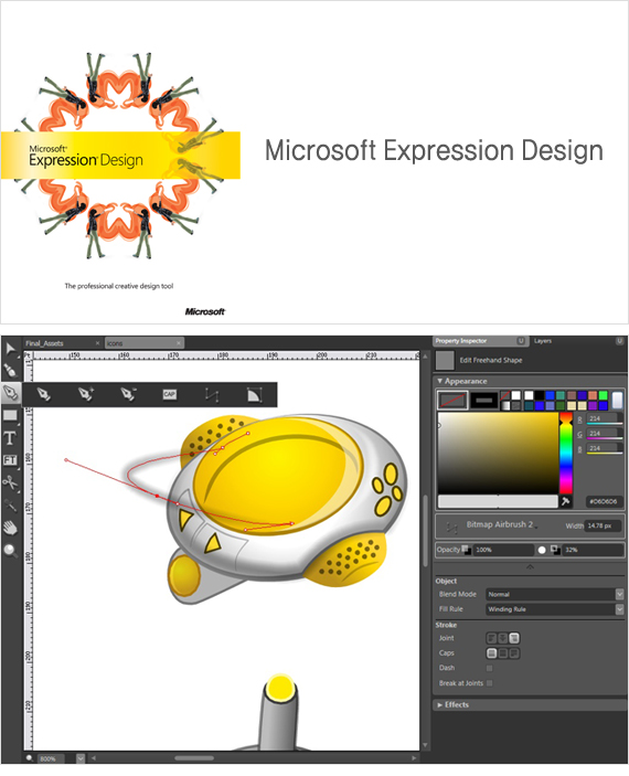 다양한 기존의 Vector 기반 아트웍이나 그래픽 툴의 결과물, 다양한 포맷의 Bitmap 이미지를 Import하거나 Export해 사용 가능하며, 새로운 Presentation 레이어 구현을 위한 XAML로 Export가 가능해 디자이너가 만든 디자인을 아무런 손실 없이 개발 툴과 통합 가능한 Expression Blend로 전달하면 즉시 개발자와 협업 진행이 가능해 다음 세대의 응용 프로그램 디자인을 손쉽게, 아무런 디자인 손실 없이 구현 가능합니다.