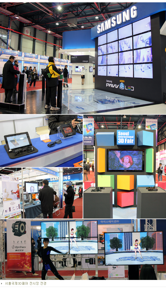 전시장은 새로운 기기와 고화질의 3D 화면의 향연이었다. 전시장에 들어서자마자 삼성전자의 대형 3D 스크린에서 흘러나오는 소녀시대의 3D 뮤직비디오가 사람들의 발길을 사로잡았다. 풀 HD 3D TV를 선보인 현대아이티 부스 앞은 최신 3D 기술을 체험해 보려는 관람객들로 붐볐고, 세계 최초로 3D 안드로이드 타블렛 PC를 제작한 아이스테이션, 모션캡쳐 기술을 눈 앞에서 시연한 모션테크놀러지 또한 관람객들의 눈길을 끌었다. 이런 전자기기 이외에도 3D 모델링을 위해 필요한 피규어, 인체 모형 제작 업체, 보급형 편광안경 제작업체 등 다양한 업체들이 참여하여 3D 열풍과 더불어 커지는 시장을 눈 앞에서 목격할 수 있었다.