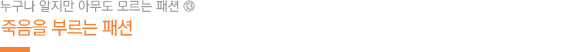 패션. 패션이라는 그 이름. 설사 죽음, 혹는 죽음에 가까운 고통이 삶을 위협할지라도, 예뻐 보이고 멋있어 보이길 원하고 현시대의 패셔너블한 사람으로 살아가길 원하는 마음은 어쩌면 인간 본능에 가까운 강력한 욕망일지도 모른다.