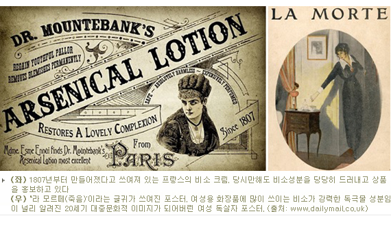 요즘 현대인들 중 자연적인 것보다 화학적인 것을 더 선호하는 사람은 흔하지 않을 것이다. 특히나 그것의 대상이 우리 몸에 닿거나 흡수될 수 있는 것이라면 더욱이 그렇다. 그러나 지금과는 달리 예전에는 강력한 화학적 반응과 성능으로 인해 이런 화학제품들이 도리어 인기를 얻었을 때가 있었다. 그 중 아름다워지기 위해 특히 인기가 있었던 것은 ‘납과 비소’였다.