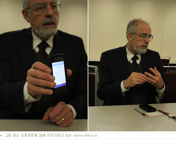 유독 호기심이 많은 사람들이 있다. 그들에게 있어 사물과 사람은 더 이상 심상한 어떤 것이 아니다. 그들은 끊임없이 질문하고 관찰하며 일상의 평범함에 비범함을 부여한다. AM+A associates의 회장이기도 한 그래픽 디자이너 아론 마커스가 바로 그런 사람이다. 스마트 그리드(Smart Grid) 정보와 결합된 모바일 기반의 어플리케이션인 그린 머신 프로젝트(Green Machine Project)를 진행하고 있는 그를 만났다. 크게 세 가지의 질문을 중심으로 진행된 그와의 인터뷰는 시종일관 흥미롭고 즐거운 분위기로 진행되었다.