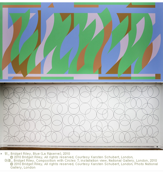 그녀는 멋있는 작품만큼이나 굉장한 미인이었다. 80세의 나이에도 불구하고 지금도 왕성히 작품 활동을 하고 있다. 이번 내셔널 갤러리 전시는 Riley의 작품에 영향을 끼친 역사적 걸작들과 그녀의 작품을 함께 보면서, 지극히 현대적인 그녀의 작품들이 어떻게 전통적인 회화 양식에서 영향을 받았는지에 대해 설명하고 보여주는 것이다.