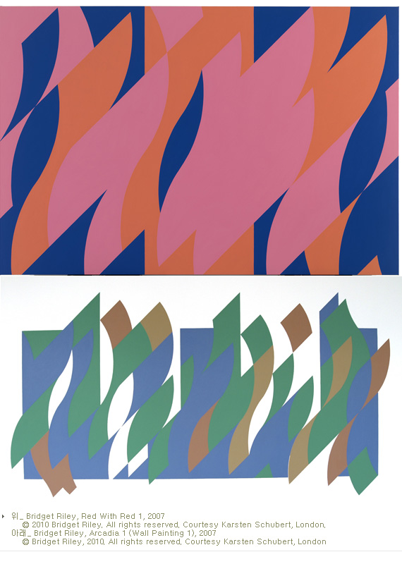 그녀는 존경하는 선배들의 그림을 따라 그리고 연구하는 것으로, 그들이 미리 내어놓은 길을 따라 걸으며 자신의 색을 찾으려 노력했다는 느낌을 떨칠 수 없었다. 예술가로서 색과 선에 대한 진지한 고민과 철학 그리고 실천적인 열정이 있는 그야말로 거장이라는 생각이 든다. 게다가 1930년대에 태어난 여자로서 말이다. 순수미술에 무지한 필자는 Bridget Riley에 대해 이전에는 전혀 알지 못했다. 단지 지나치다 발견한 그녀의 율동감 있는 컬러 플레이에 매료되어 조금 더 깊이 들어가 본 것이다. 단지 그 색감이 마음에 들어 그녀의 캔버스에 들어간 것만은 아니었다. 거장이라는 것은 그런 것인가 보다.
