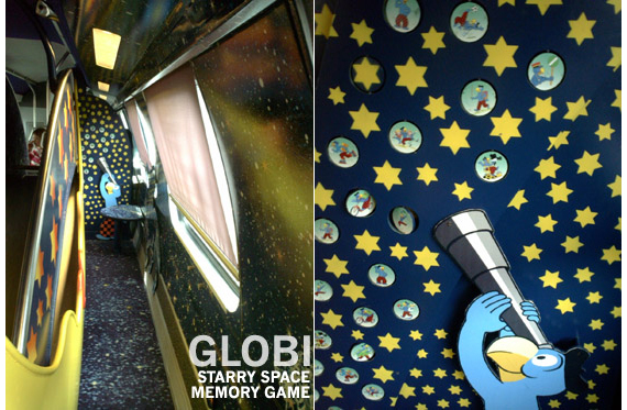 글로비 테마의 주조색은 별이 많은 우주의 모습을 표현하는 짙은 남색과 선명한 노랑이다. 글로비가 별을 관찰하는 모양으로 메모리 게임을 만들었다.