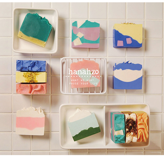 일상 속에서 가장 자유로우면서 동시에 자기 자신에게만 온전히 집중할 수 있는 시간은 언제일까. 눈에 띄는 색감으로 심지어 먹고 싶게 만드는 한아조(hanahzo) 비누는 우리가 욕실에서 보내는 시간이 바로 그 때라고 이야기한다. ‘수확의 계절’, ‘멘델의 분홍’, ‘바다수영’ 등 이름마저 재치 있는 한아조의 비누들은 기존에 우리가 보아오던 심심한 천연비누들과는 확실히 차이가 있다.
