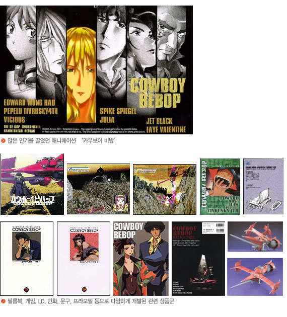 미국의 경우에는 애니메이션, 만화에 등장한 캐릭터가 비디오, DVD, 게임산업으로 연계되고 그 인기도를 등에 업고 상품화단계로 이어집니다. 일본의 경우에는 먼저 출판만화에 등장한 캐릭터가 다음으로 TV시리즈, 비디오, 극장용 애니메이션 그리고 상품화로 이어지게 되지요. 그러나 항상 이러한 패턴으로 진행되는 것은 아니고 ‘헬로 키티’의 경우 팬시 캐릭터로 인기를 얻고 난 다음 상품화로 이행된 경우입니다. 우리의 경우 플래시 애니메이션에서 시작하여 인기를 얻고 상품화로 연결된 캐릭터들도 볼 수 있었습니다.