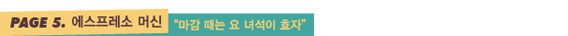 “마감이 임박하면 밤을 지새우는 경우가 허다하다. 잠을 쫓기 위해 커피를 마신다. 하지만 마감 때에는 커피 타는 시간도 아깝다. 그래서 에스프레소 머신을 장만했다. 에스프레소 캡슐만 쏙 넣으면 끝. 시간 소비를 최소화하면서, 잠까지 쫓을 수 있다. 마감 때는 요 녀석이 정말 효자 노릇을 한다.”