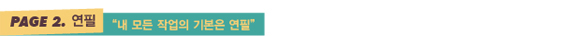 “컴퓨터로 작업하는 경우에도 일단 배경이나 패턴은 무조건 연필로 그려본다. 연필을 사용하고 있으면, 쌓여 있던 시간들이 모조리 내 손을 타고 흘러 연필심 끝으로 나오는 기분이다.”