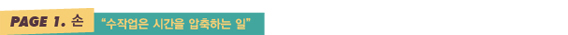 “내가 궁극적으로 지향하는 건 수작업이다. 물론 마감에 쫓기며 외부 일을 하다보면 컴퓨터로 대부분의 작업을 진행하기도 한다. 그렇다고는 해도, 수작업을 절대 놓지는 않을 거다. 손으로 뭔가를 만드는 일은 ‘시간의 압축’이라는 의미를 갖고 있다. 손은 확실히 컴퓨터에 비해 느리다. 하지만 시간을 들인다는 건, 그만큼 정성을 들인다는 것. 나는 그 느낌이 좋다.”