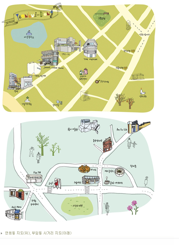 에서 발간된 아코디언 북(Accordion Book)은 허경미의 일러스트로 채워져 있다. ‘12 Fascinating Cafes Around Hongdae’란 제목의 이 아코디언 북은 총 12페이지로, 홍대 주변 카페 12곳을 본뜬 12컷의 그림들이 각 페이지마다 하나씩 들어가 있다. 이 카페들은 모두 3년 이상 제자리를 지켜온, 홍대 앞 지역문화 커뮤니티의 장이나 마찬가지이다. 또한,