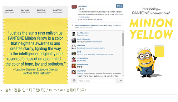 영화 <미니언즈>의 출시에 앞서 색채 연구소 팬톤은 2015년 4월 미니언의 색상을 담은 '미니언 옐로우'를 선보였다. 그런데 그 탄생 배경이 흥미롭다. 지난 '2015 그래미 어워드'에서