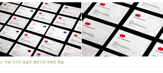 플립 리브랜딩은 이제 시작이라고 보면 된다. 무궁무진하게 변화할 수 있는 가능성을 지닌 모듈을 이제 막 만든 것 뿐이다. BI. CI는 물론이고 명함, 사원증, 웹사이트, 문서양식 등 회사의 모든 부분에서 활용되고 있거나 활용될 예정이다. 특히 명함 같은 경우 150여명 되는 직원들의 얼굴을 일일이 명함 뒷면에 패턴으로 삽입했다. 회사의 아이덴티티만큼 직원 한명 한명의 아이덴티티 또한 중요하기에 많은 수고가 들어감을 알면서도 진행한 부분이다. 또한 명함에는 팀별로 CI 이미지도 각각 다르게 들어간다. 이는 회사 안에 팀, 팀 안에 개인, 회사와 팀, 개인이 서로 정체성을 가지면서도 조화되는 모습을 보여주려 했던 것이다.