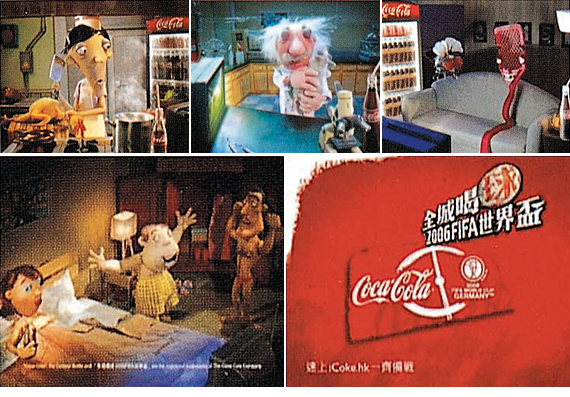 월드컵 바람과 함께 코카콜라의 매력은 우리가 월드컵의 매력에 빠지는 것과 동시에 또 다시 드러나기 시작한다. 광고화면의 질감적인 부분과 시끄러운 음향효과는 감화력이 풍부하다. 한 순간에 모든 사람의 눈과 귀를 사로잡는다. 애니메이션의 과장된 표현과 귀여우면서도 연극적인 부분이 많이 사용되었다.