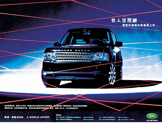이 세상에서 어떤 물건들이 겹겹의 레이저선으로 보호를 받을 수 있을까? 새로이 출시된 LAND-ROVER 시리즈는 이런 보호가 가능하다. LAND-ROVER의 이 광고는 자동차 전통적인 광고에서 보통 사용되는 길 위를 달리거나, 자동차 성능의 좋고 나쁨을 소개하는 점에서 벗어났다. 독창적으로 새로운 광고의 길을 만들어 주인이 긴장되어 지키는 상황을 연출하고 LAND-ROVER 자동차의 존귀하고 우수한 점을 표현해내고 있다. 오로지 자동차의 우월적인 성능만을 강조하는 것보다 더 쉽게 소비자의 공감을 불러일으키는 방법이 아닌가 싶다.