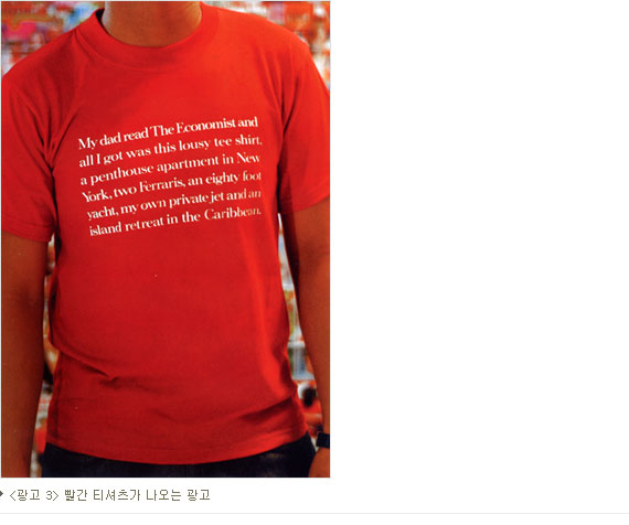 지의 광고는 이렇게 빨간 색 배경에 흰 글씨를 쓰기로 유명하지요. 여기서도 같은 방법을 써서 통일성을 유지하고 있습니다.