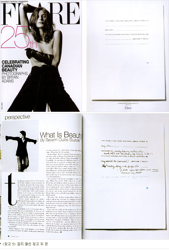 실제로 잡지를 보다가 이런 문장을 만나면 빈 칸을 채우라는 제안입니다. 그런 후 이를 아름다움을 위한 자기의 목표나 비전으로 삼으라는 것입니다. 이른바 ‘인터랙티브 잡지광고’인 셈이지요.