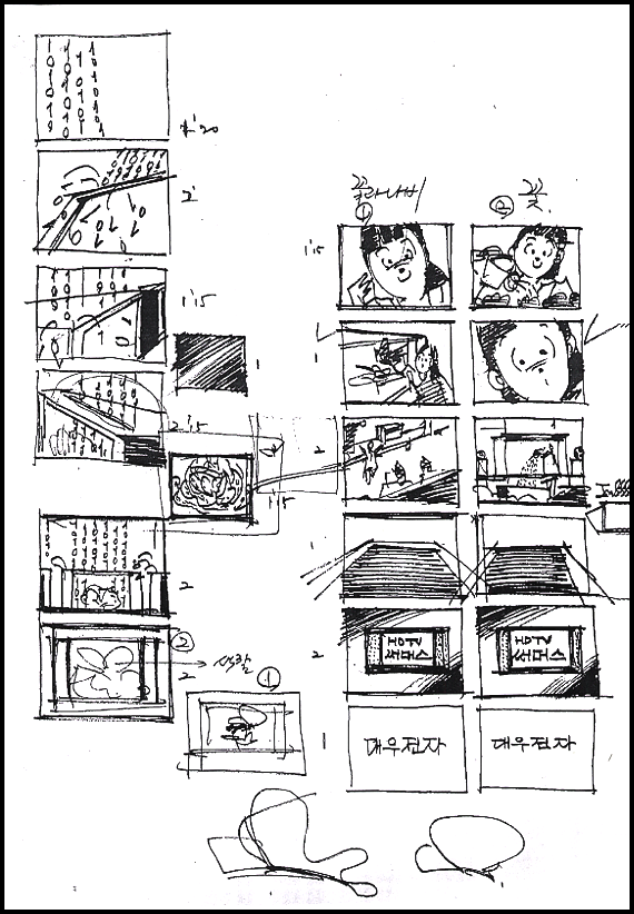 제작진들은 디지털TV의 속성을 소비자들에게 쉽게 전달하기 위해 수많은 Brain Storming 작업 속에 꽤나 맛깔스러운 콘티를 잡아냈다.