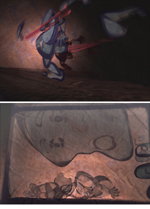 2D 스타일의 캐릭터로 Z방향의 3차원적 공간에서의 애니메이션이 제한적으로 Rigging(Character Set Up)에 많은 신경을 써 현대무용을 전공한 댄서들의 도움으로 평면적 캐릭터의 추상적인 동작 표현에 연출 완성도를 높였다고 한다.